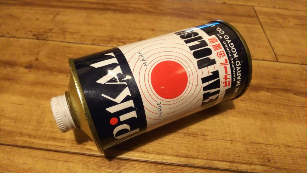 コンパウンドの他「金属磨きピカール」という製品もよく使います。こちらも微細な粒子で汚れを削り取ります。こちらも大変きれいになりますが、コンパウンドと同じくメッキや塗装をはがしてしまうリスクがありますので、症状に応じて使い分けると良いと思います。