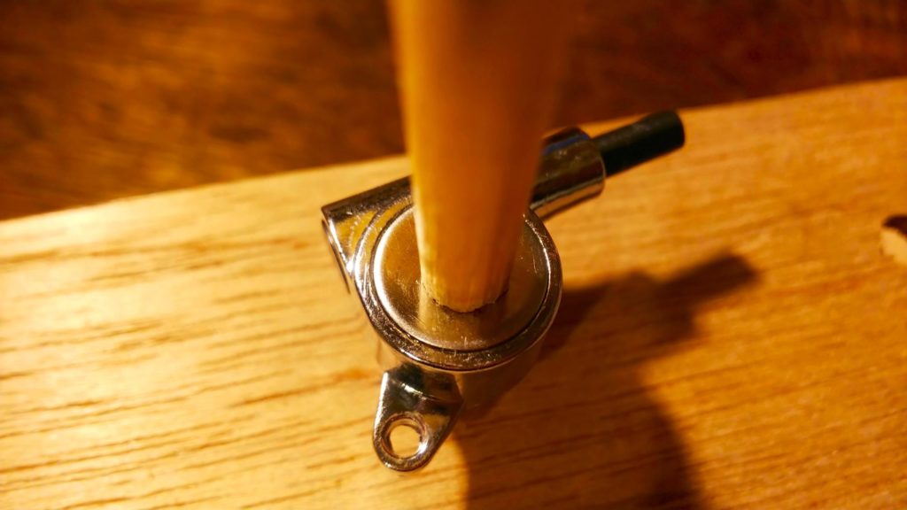 ⑥軸に樹脂ワッシャー、ワッシャー、ペグボタンの順で差し込み、ネジで固定します。