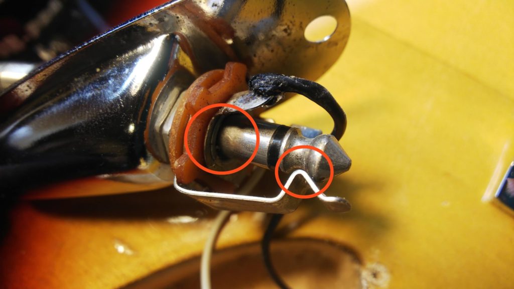 長期間ギターを弾かずに保管しておくと、次に使おうとした時に、ボリュームやトーンを回した時や、ジャックにシールドを差し込む時に「ガサガサ、バリバリ」というようなノイズが出ることがあります。ひどい物によっては音が途切れたりすることもあります。これまでのジャンクギター修理では当然のように出てくる症状でした。