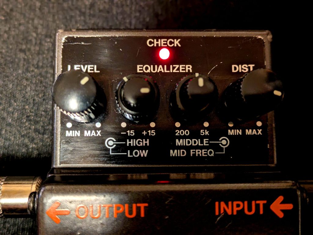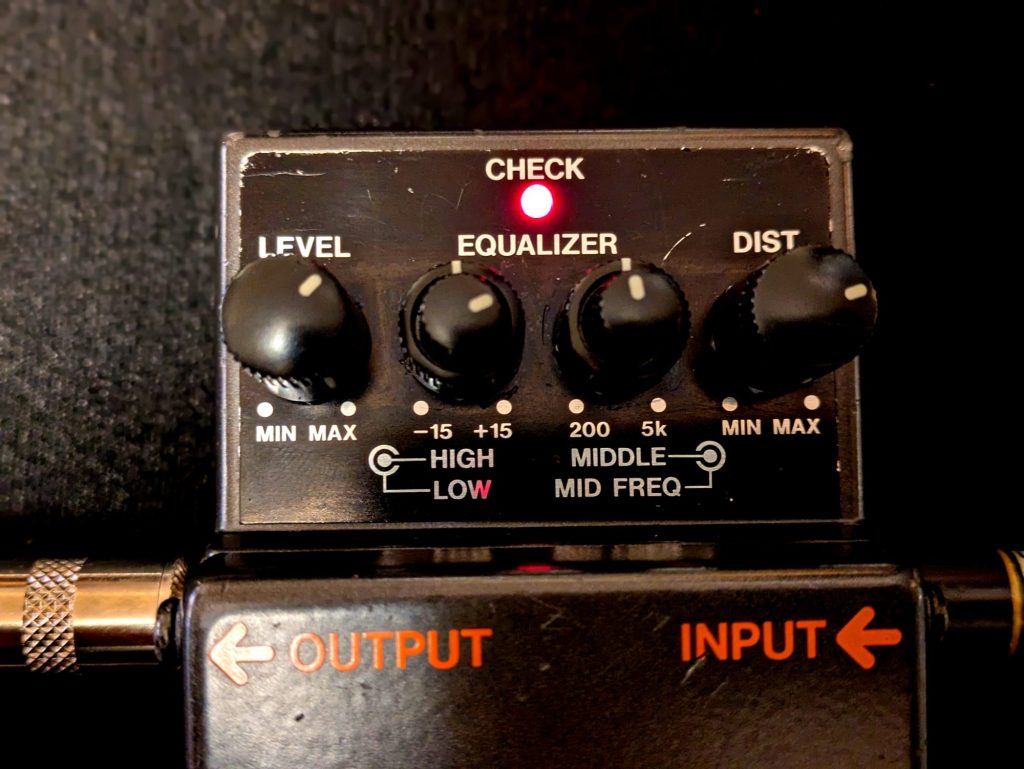 クリーン・ブースト設定では、ギター本来のクリーンなトーンを維持しながら、ほんの少しのオーバードライブを加えることでエフェクター独自の音色が加わり、ひと味違ったクリーンサウンドになります。アンプが歪んだ状態をブーストすることもできますが、極端なセッティングにすると音がつぶれたり、ノイズが出ます。独特な音色を狙ってみるのなら使えるかもしれませんが、MT-2は歪ませるのが目的のエフェクターなので、わざわざ歪みを落としてブースターとして使う必要はないと思います。
