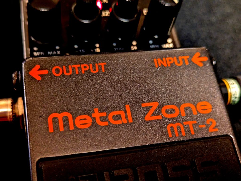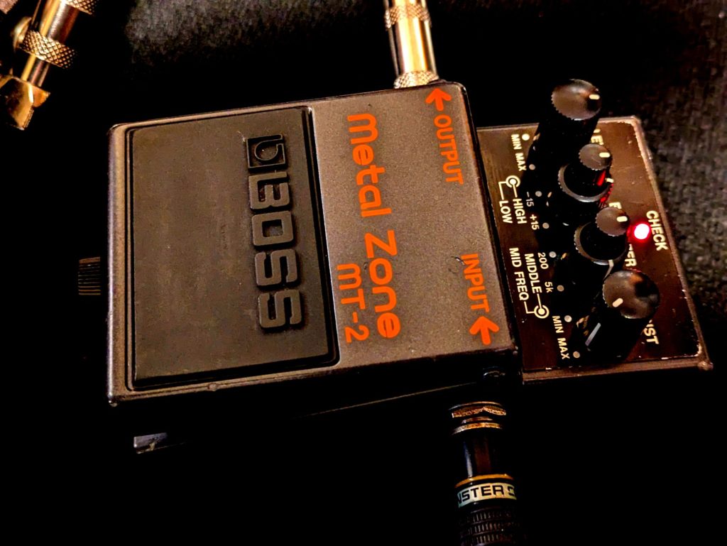 MT-2は、BOSS(ボス)製のエレキギター用ディストーションペダルで、1991年に登場しました。メタルやハードロックを得意とする強烈なディストーションサウンドを作ることができます。MT-2にはミッド、ベース、トレブルを調整できる3バンドイコライザーが搭載されており、プレイスタイルに適した音作りが可能です。特に、ミッドの調整については帯域可変イコライザーでブーストカットができるのでとても効きが良く、ワウ半止めのようなサウンドや、某ピックアップのように中音に特徴を持たせたようなサウンドを簡単に作りやすいです。イコライザーである周波数をブースト、カットするとどうなるのか、この1台で実験的な事を試すこともできます。小さな音量でもハイゲンインディストーションサウンドを得られる手軽さもあって、100万台以上売り上げている人気のあるエフェクターです。