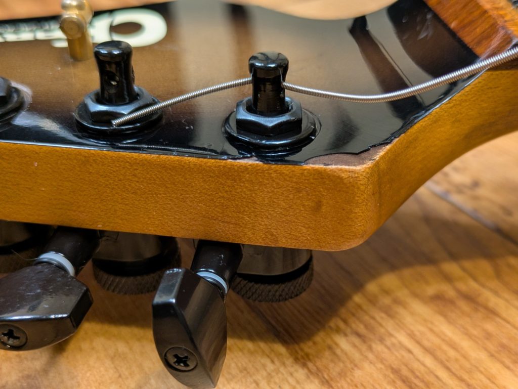 一方、ロック式では弦を内部でクランプして固定するため、巻き数を減らしても弦が動かず、安定したチューニングを維持できます。加えて、弦交換が非常に簡単になるのも利点です。弦を通してロックし、軽く巻いてチューニングするだけで完了するため、ライブやスタジオでの素早い対応が求められる場面で便利です。また、弦がしっかり固定されることで余分な振動が抑えられ、サステインや音の立ち上がりにプラスの影響を与えるという意見もあります。