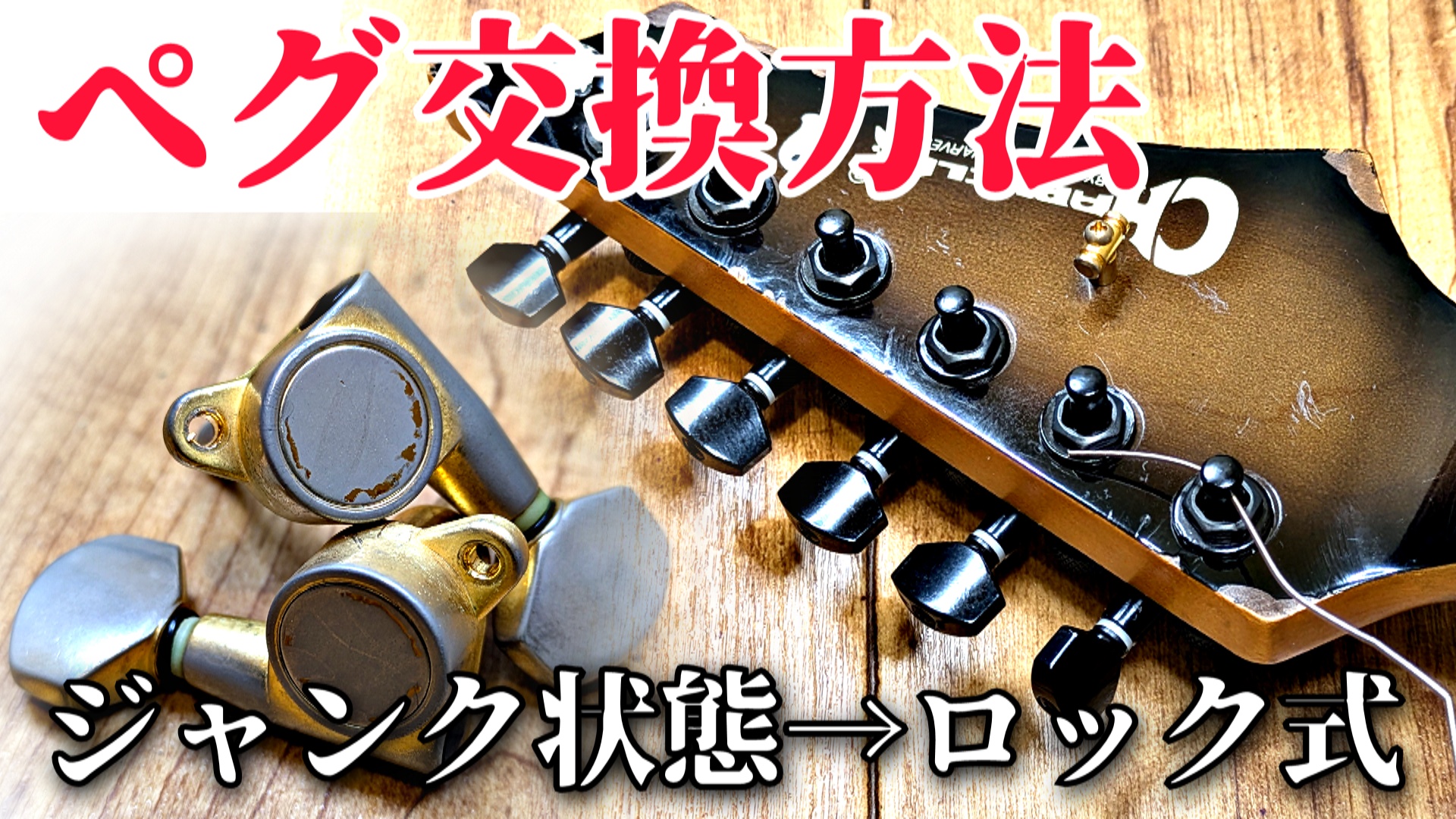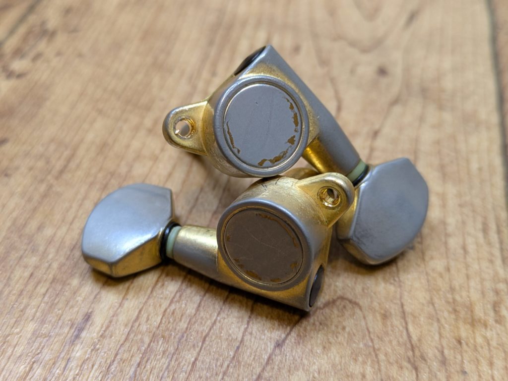 長い間使ってきたギターのペグが劣化しました。金属がすり減りペグを回す時にがたつきが発生。樹脂ナットは劣化して割れる寸前です。もともとゴールドパーツだった外見もメッキがはがれてしまい、くすんだ色になりました。見た目だけの問題なら気にしない性格なのですが、チューニングが合わなくなってしまったのでそろそろ交換することにしました。せっかくなのでお手頃価格で販売されているロック式ペグを試してみることにしました。