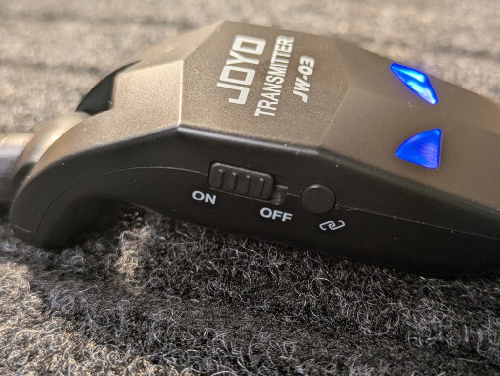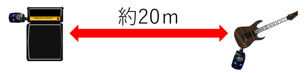 通信距離が30m程度のギターワイヤレスが多くなってきましたが、JW-03は抑えめにしているようです。実際には30mもアンプやエフェクターから離れて演奏することはほとんどありませんので、あまり気にするところではないと思います。そんなに離れたとしたら、よほどPAの環境が優れているか、インイヤーモニターを使わないと音が聞こえません。